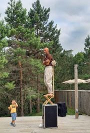 Spectacle tout public à partir de 3 ans. Durée : 30 à 45 minutes. Salle ou extérieur. Dimensions mini : H : 3,5 m, O : 5 m, P : 5 m.