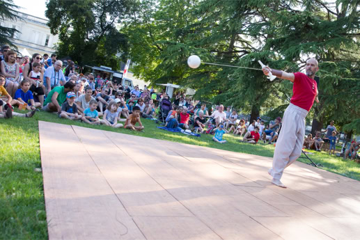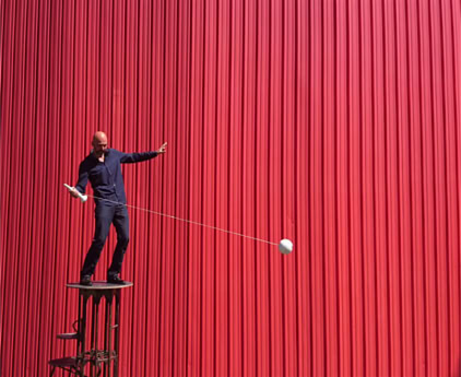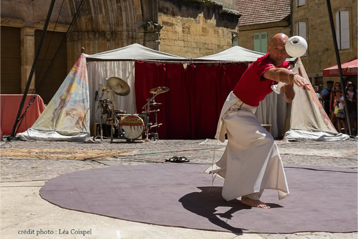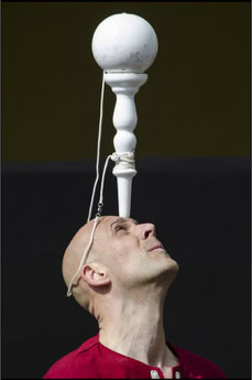 Une performance circassienne originale. Durée : 10 mn. Visuel et sans texte, Possibilité de jouer plusieurs fois par jour au sol ou en hauteur (nous contacter pour cette dernière version).