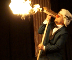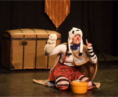 Durée : 30 - 45 minutes. En salle ou en extérieur (espace scénique clos). Dimensions minimales : H : 2,5 m, O : 5 m, P : 4 m